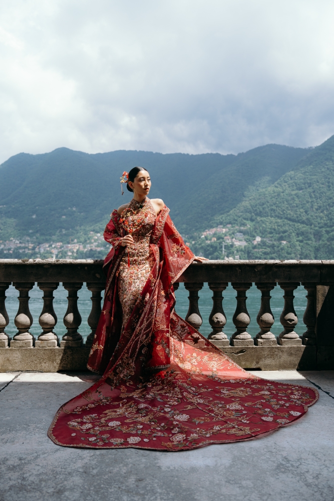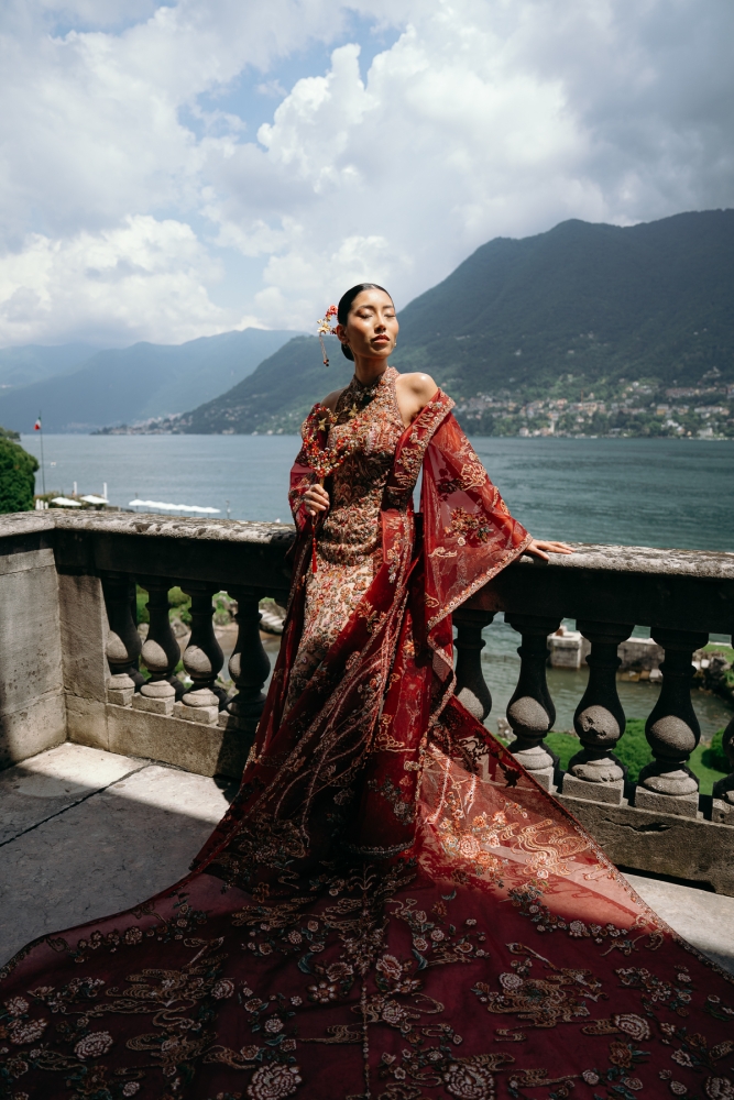 An elegant multicultural wedding at Villa Erba on Lake Como, featuring refined details, stunning gowns, and an enchanting Indonesian Tea Pai ceremony.