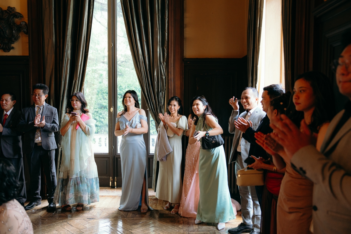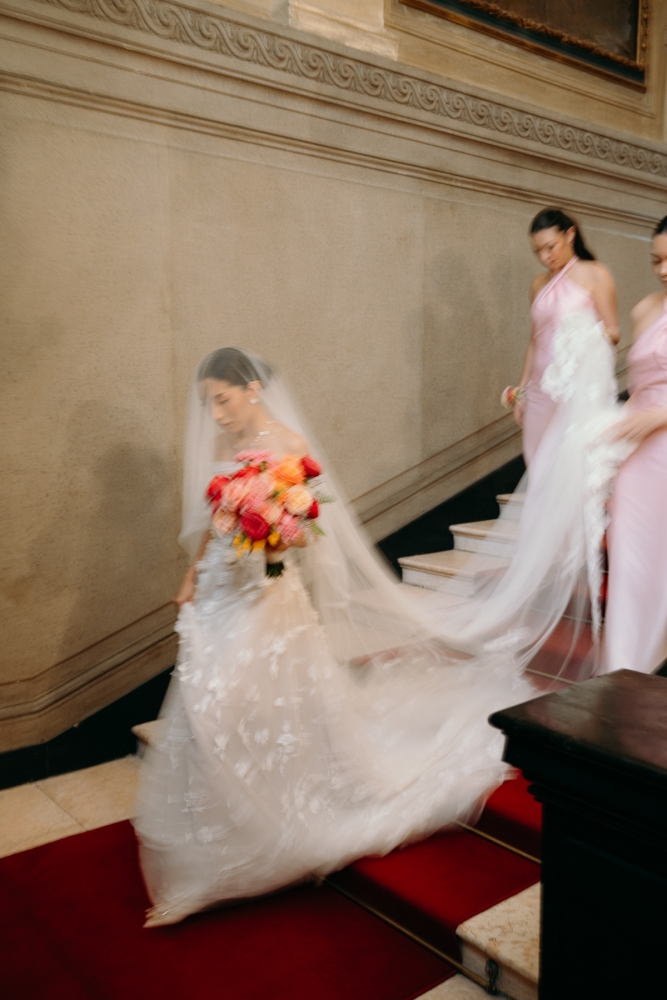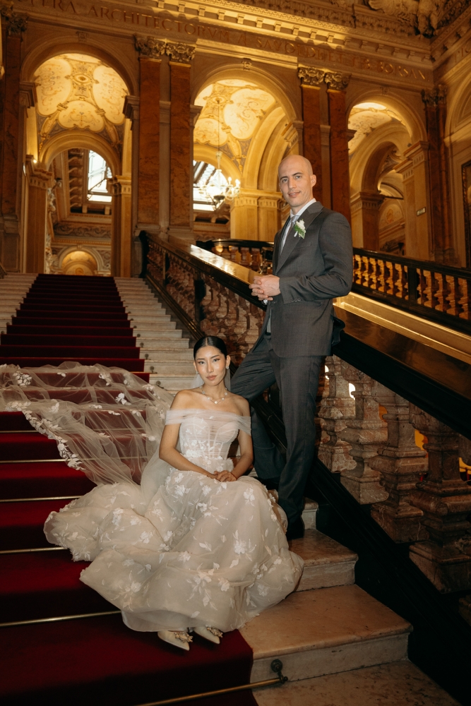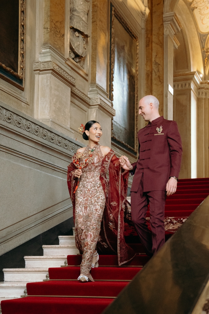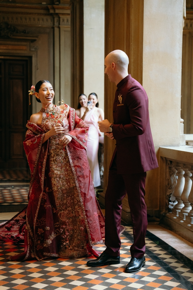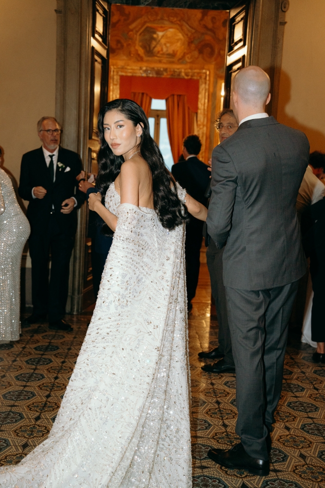 The day began with the traditional Indonesian Tea Pai ceremony, where Thalia wore a stunning traditional dress by Stella Lunardy. Villa Erba’s atmosphere perfectly complemented this cultural union, enhanced by gorgeous floral designs by Stiatti Fiori, elegantly coordinated by the wedding planner Hop Wedding, who took meticulous care of every detail.