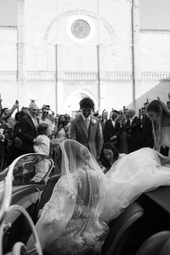 Il matrimonio di Domizia Castagnini e Francesco “Pecco” Bagnaia, campione del mondo MotoGP con Ducati, si è svolto a Pesaro, con cerimonia nel Duomo e ricevimento nella splendida Villa Imperiale. Un evento elegante e misurato, curato da Agenzia Uno, con abiti di Andrea Sedici e Gucci, catering La Fenice per Massimo Bottura, musica di Alessandro De Angelis e video di Mirco and Anisa.