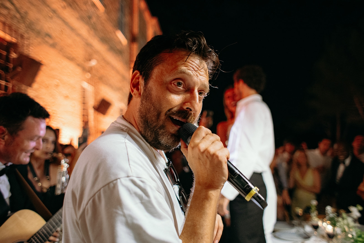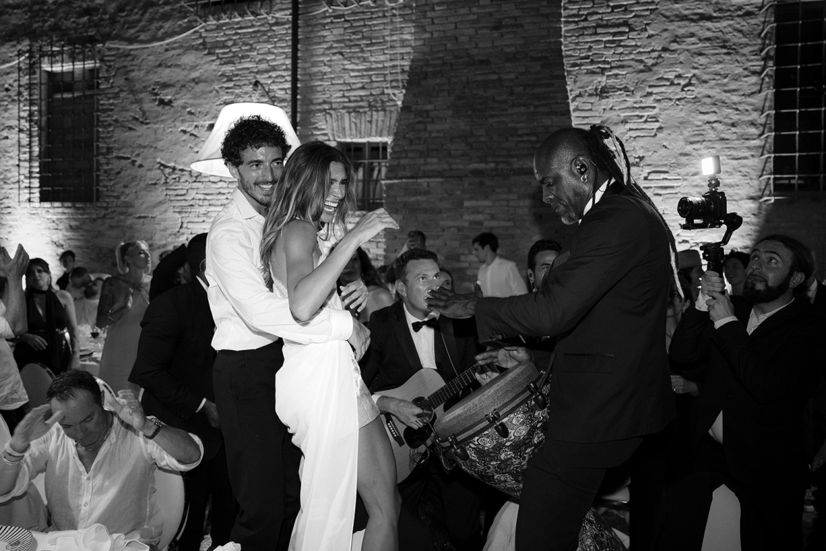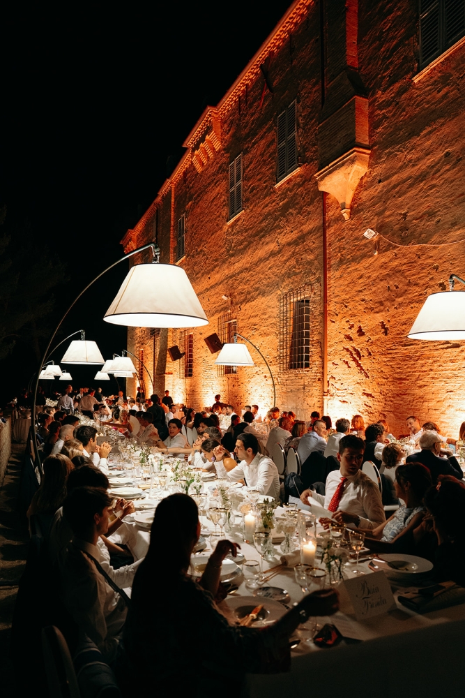 La regia dell’evento è stata curata da Agenzia Uno, che ha saputo mantenere uno stile sobrio e raffinato, lasciando spazio all’atmosfera naturale del luogo e alla spontaneità della giornata. Il catering La Fenice per Massimo Bottura ha firmato un’esperienza gastronomica di altissimo livello, mentre la musica di Alessandro De Angelis e della sua band ha accompagnato gli ospiti fino a sera con energia e gusto.