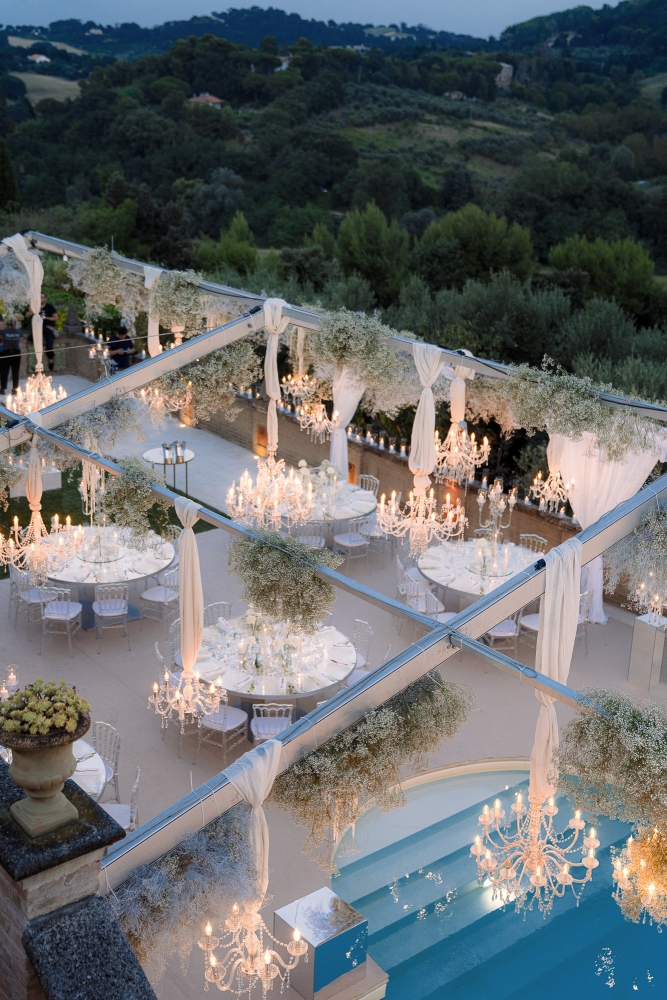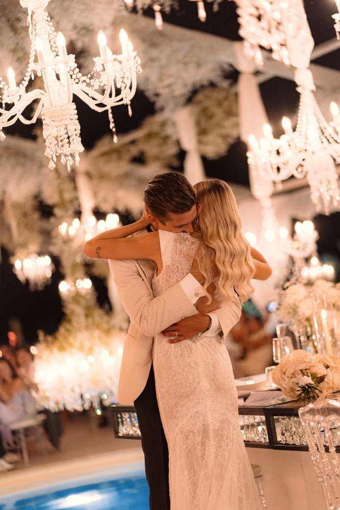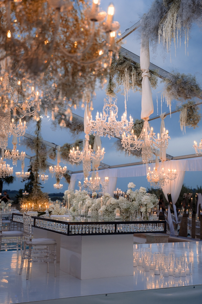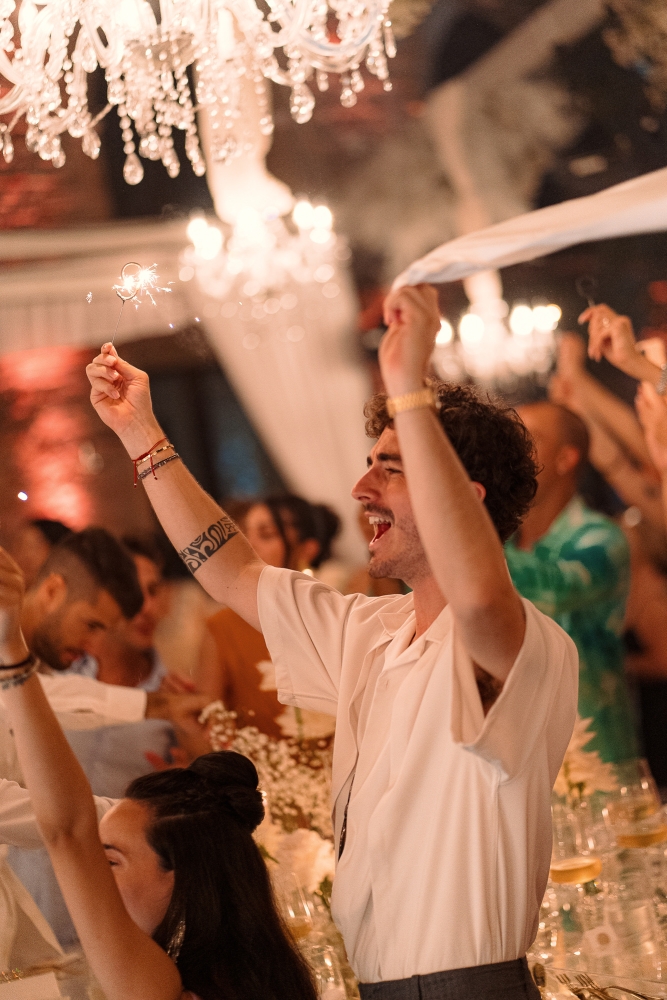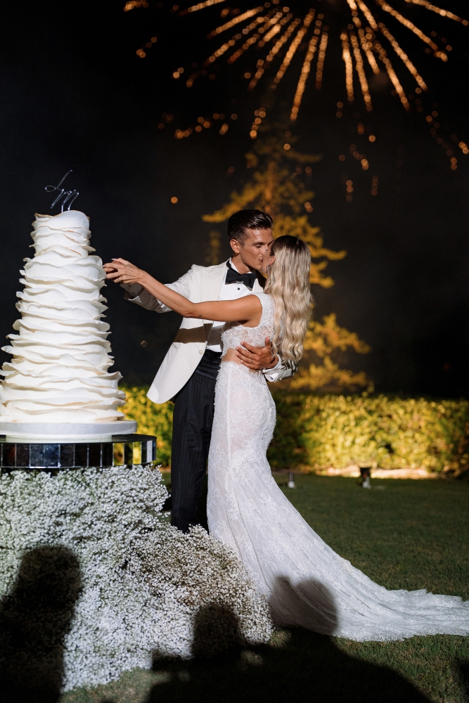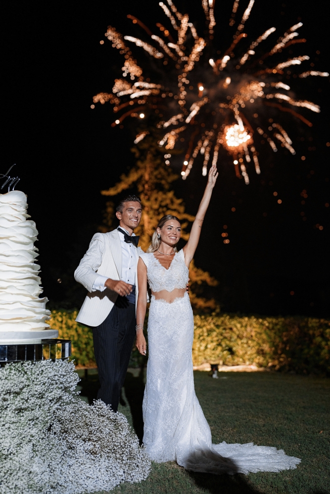 La serata si è conclusa con uno spettacolare taglio della torta sotto i fuochi d’artificio e un party travolgente tra balli e brindisi. Un evento che ha saputo coniugare emozioni autentiche ed eleganza senza tempo.